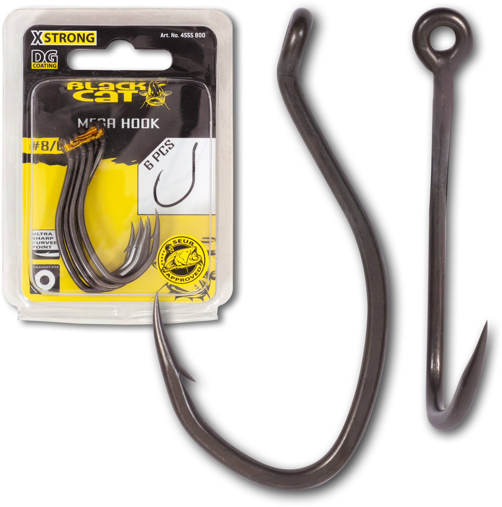 Háček Mega je nejuniverzálnějším jednoháčkem na trhu. Díky svému jedinečnému tvaru a zahnuté kónické špičce nabízí háček Mega vlastnosti, které se téměř přibližují 100 % po háčku požadovaného. Dlouhá, ostrá špička háčku přitom velmi lehce pronikne do sumčí tlamy. A je celkem jedno, jestli se jedná o nástrahu s mrtvou rybou nebo víceháčkovou montáž pro živé nástražní ryby. Má-li se použít jednoháček, potom je háček Mega tou správnou volbou. Díky vyhnutému a zaletovanému očku se může bez problémů používat monofilní návazcový materiál. Tento jednoháček patří do každé rybářské tašky! "DG Coating", inovativní potah s daleko hladším povrchem než Teflon®. 4x vyšší odolnost proti korozi v porovnání s běžnými potahy a krycími vrstvami.