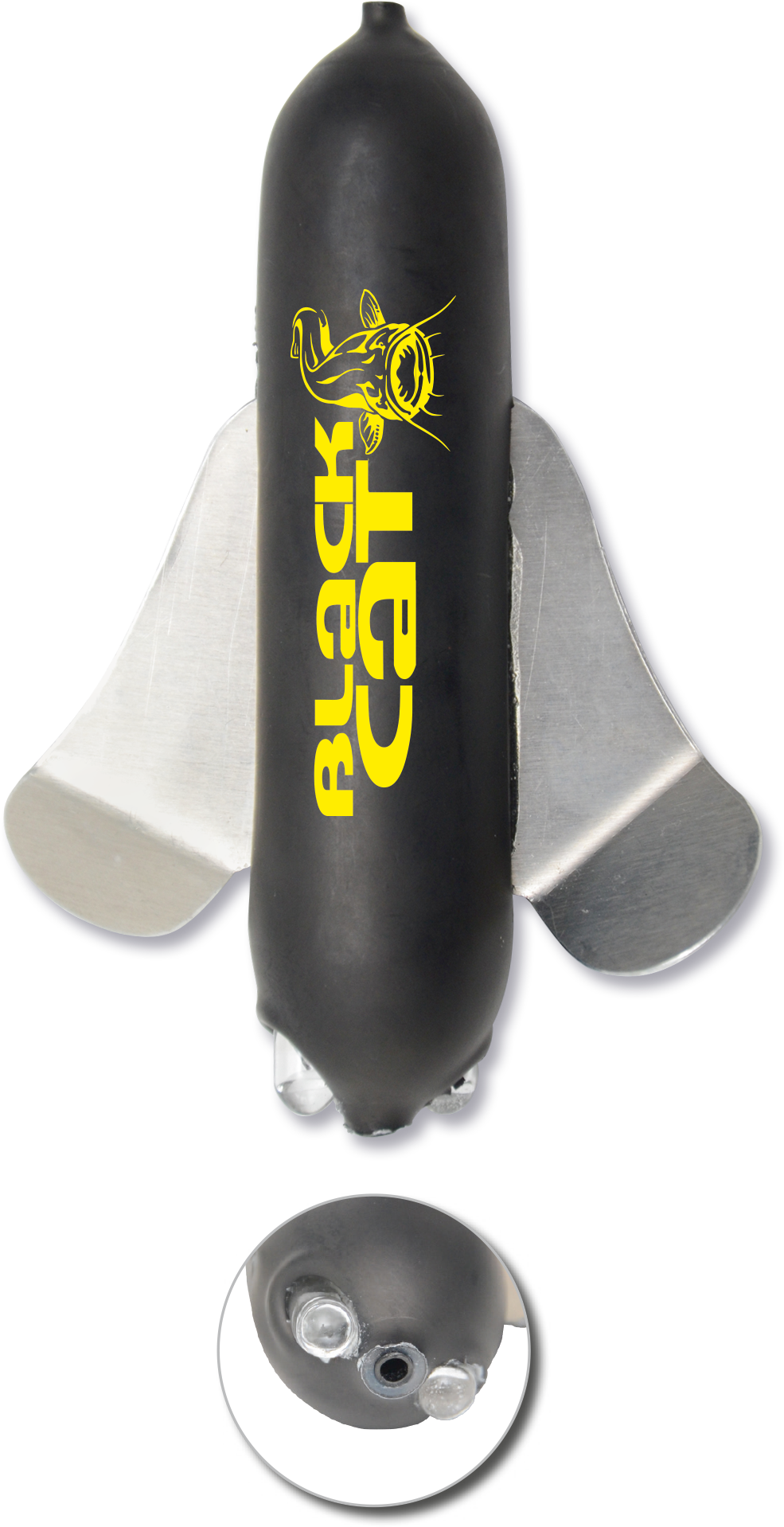 Nový vrtulovitý podvodní splávek má vestavěná odolná lehká kovová křídla, která pod vodou vyvolávají silné tlakové vlny. Jsou vybaveny také skleněnými chrastítky, která produkují hluk, když splávek rotuje a lákají sumce k nástraze.